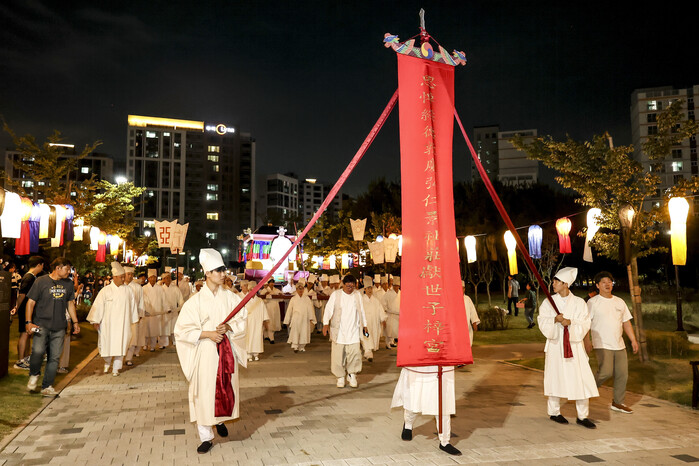 이어, 횃불로 죽산마에 불을 붙이는 ‘죽산마(竹散馬) 소지 퍼포먼스’가 웅장하게 펼쳐져 시민들의 이목을 끌었다. 여기에는 왕의 장례식에서 영혼을 천상까지 극진히 봉송한다는 의미가 담겨있다.