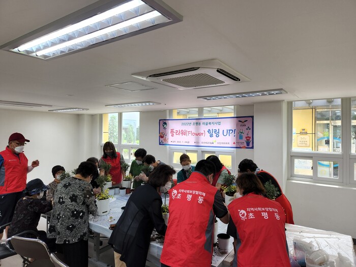 이 사업은 올해 6월 초평동 대표 마을 복지사업으로 선정되었다.‘꽃(반려식물)’을 활용한 원예 심리 활동으로 주민 참여 및 지역 네트워크를 통해 마음이 힘든 사회적 취약계층의 정서를 지원하고 사회적 관계 회복을 목적으로 한다.