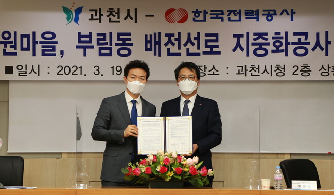 과천시는 19일, 문원동 공원마을 및 부림동 단독주택 지역 ‘배전선로 지중화 사업’을 위해 한국전력공사와 이행협약을 체결했다고 밝혔다.