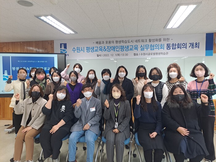 수원시는 1일 수원시평생학습관에서 수원시 평생교육실무협의회·장애인평생교육실무협의회 통합회의를 열고, 상생협력 방안을 논의했다.