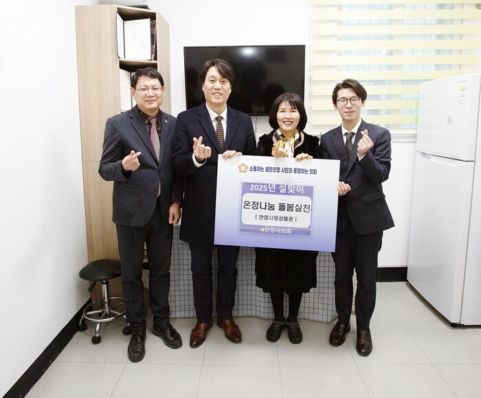 안양시의회(의장 박준모)는 지난 23일 설 명절을 맞아 관내 사회복지시설 4곳을 방문해 관계자들에게 격려와 위로의 손길을 전하고 위문품을 전달했다. 이번 방문에는 박준모 의장과 이동훈 총무경제위원장이 함께 참여했다.
