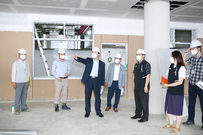 이날 김 시장은 현장관계자로부터 공사 추진현황을 보고받고, 본관과 이어지는 동선, 목욕탕의 높이와 바닥재, 안전펜스 등 어르신들이 안전하고 편리하게 노인전용목욕탕과 경로식당, 강당 등을 이용하실 수 있는지 꼼꼼히 공사현장을 점검했다.