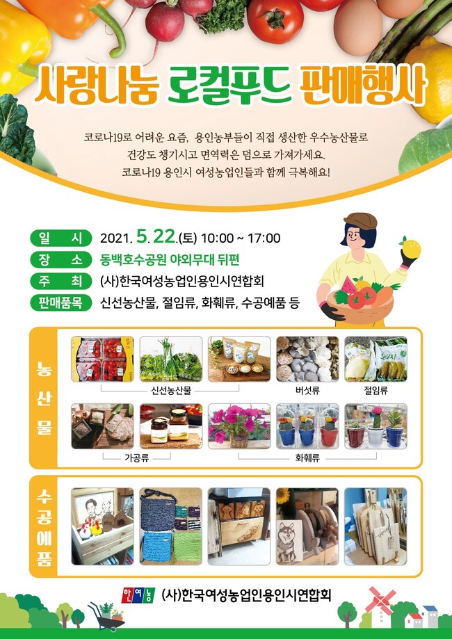[로컬라이프] 백군기 용인시장은 오는 22일 토요일 동백호수공원 야외무대 뒤편에서 ‘사랑나눔 로컬푸드 판매행사’를 진행한다고 밝히며, ‘로컬푸드 판매 행사’에 시민분들을 초대한다고 말했다.