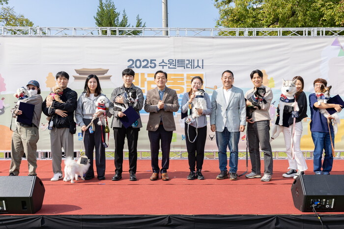 수원시가 25일 서호잔디광장에서 연 ‘2025년 반려동물 한마음 축제’에 함께한 이재준 시장은 “반려동물을 키우는 인구가 늘어나는 만큼, 반려동물 문화의 중요성도 커지고 있다”며 “수원시는 매너견 인증제, 반려동물 문화교실, 반려견 순찰대 등 반려견과 함께 살아가는 공동체를 위한 정책을 지속해서 추진하겠다”고 밝혔다.