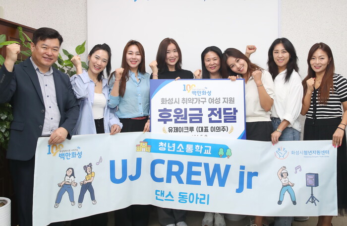 유제이크루가 화성시(시장 정명근)에 취약가구 여성들을 위한 후원금을 기탁했다.