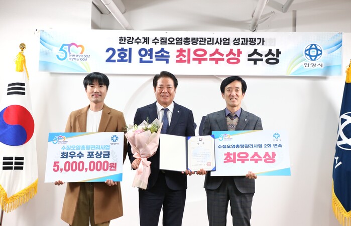 안양시가 한강유역환경청이 주관하는 ‘2022회계연도 한강수계 관리기금사업 성과평가’에서 ‘오염총량관리사업 분야’ 1위를 달성해 최우수상과 포상금 500만원을 받았다고 6일 밝혔다.