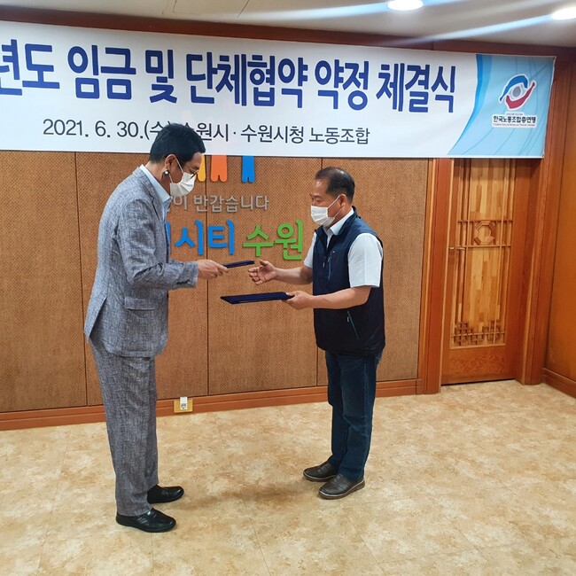 수원시는 환경관리노동조합(수원시청노동조합)과 ‘2021년 단체협약 및 임금협약’을 체결했다.
