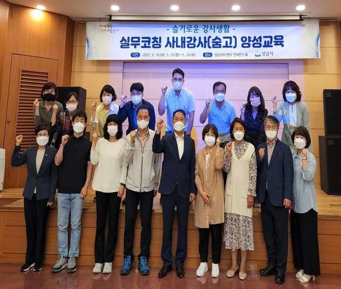 성남시는 5. 23.~5. 24. 이틀에 걸쳐 성남아트센터 컨퍼런스홀에서 공무원 16명 대상으로 실무코칭 사내 강사 양성 심화교육을 진행했다.