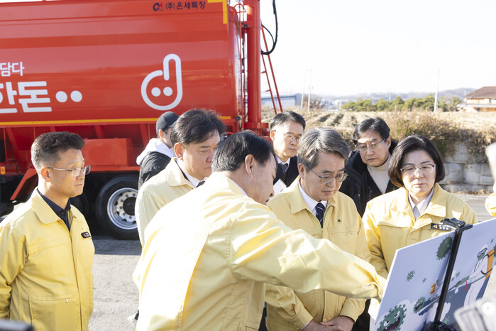 28일 안성에서 19번째 민생경제 현장투어에 나선 김동연 경기도지사가 경기도 최남단 안성의 거점소독시설을 찾아 초동 방역 상황을 긴급 점검했다.