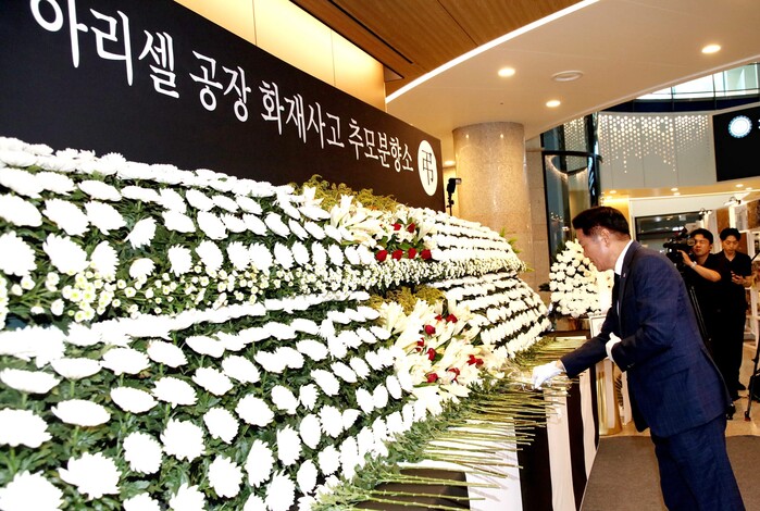 [안양=로컬라이프] 송준형 기자 = 최대호 안양시장은 30일, 아리셀 공장 화재사고 추모분향소를 찾아 조문하고 깊은 애도의 마음을 전했다.