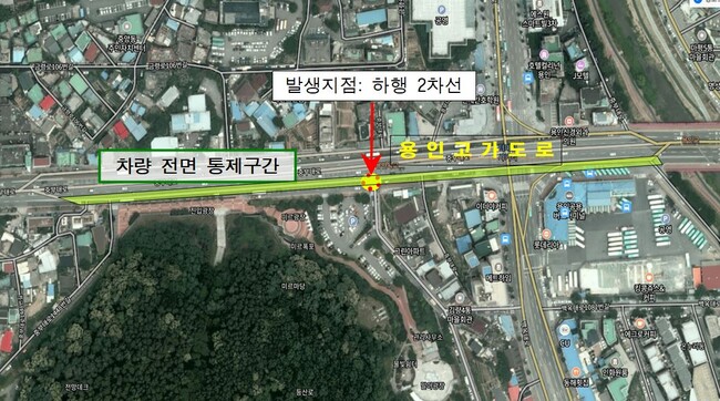 사진/용인고가도로 파손 발생지점과 차량통제 구간(사진제공=용인시)