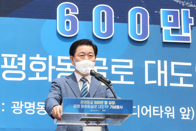 사진/광명시는 5월12일 광명동굴 빛의 광장에서 ‘광명동굴 입장객 600만 명 돌파 기념행사’와 ‘광명평화동굴 도약 선포식’을 개최했다.(사진제공=광명시)