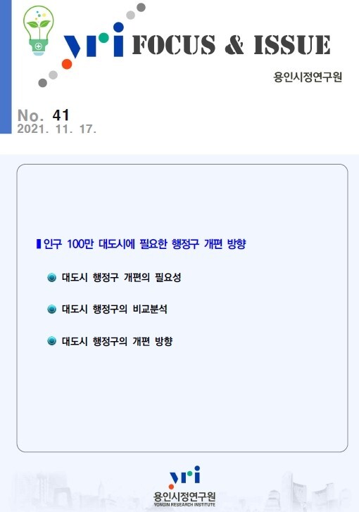 용인시정연구원, 특례시 행정구 개편방향 제언