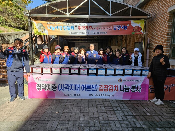 김영경 수원시재향군회장은 “바쁜 연말 일정에도 김장에 동참해 주신 분들께 감사드린다”며 “소외된 이웃들에게 관심을 지속해서 기울이며 온정을 나누는, 다 같이 건강하고 밝은 사회가 되길 바란다”고 밝혔다.