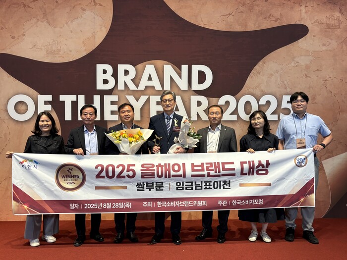 이천시 대표 농특산물 브랜드 ‘임금님표이천쌀’이 8월 28일 서울 신라호텔 다이너스티홀에서 열린 한국소비자브랜드위원회 주최 ‘2025 올해의 브랜드 대상’ 시상식에서 쌀 부문 대상을 6회째 수상하는 쾌거를 이뤘다.