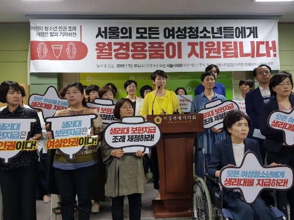 서울시의회 권수정(정의당)·권영희(더불어민주당) 시의원은 31일, ‘서울시 여성청소년 생리대 보편지급 운동본부’(이하 운동본부)와 함께 기자회견을 갖고 관련 조례 발의를 발표했다.