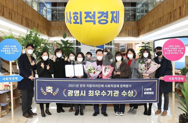 [로컬라이프] 송준형 기자 = 박승원 광명시장은 광명시가 고용노동부가 주관하는 '제3회 지방자치단체 사회적 경제 정책평가'에서 전국 2위, 기초지방자치단체 중 1위를 차지해 '사회적 경제 활성화 전국 네트워크 상임공동대표상'을 수상했다고 밝혔다.