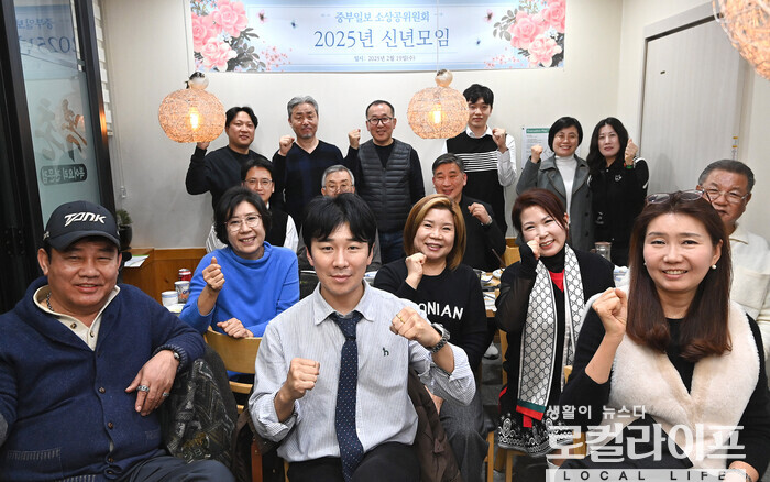 | ▲ 신년모임 후 참석자들이 기념촬영을 하고 있다. 이 자리에서는 '2025년도 활동 계획'에 대한 논의와 함께 소상공인 현안에 대한 의견, 정부에 대한 건의사항 전달 등이 있었다. (사진제공=중부일보 소상공인위원회) |