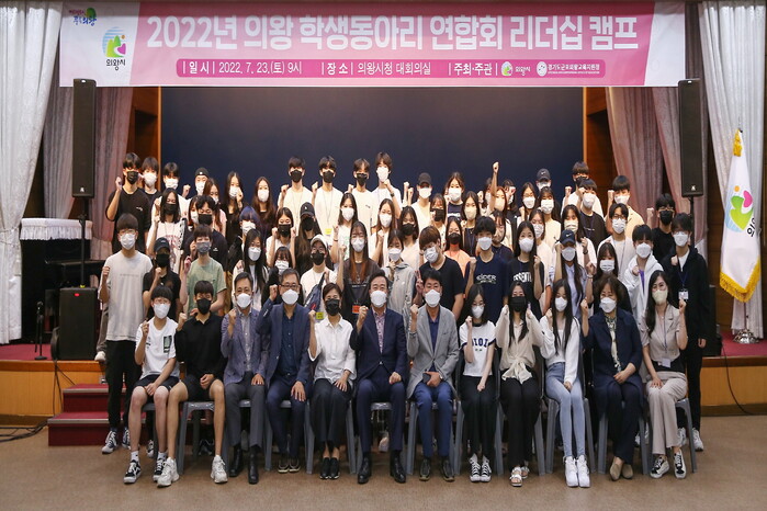 의왕시(시장 김성제)는 지난 7월 23일 의왕시청 대회의실에서 관내 중·고교 학생동아리 및 청소년수련시설 동아리 대표학생 등 140여명이 참석한 가운데 ‘의왕 학생동아리 연합회 리더십 캠프’을 개최했다고 밝혔다.