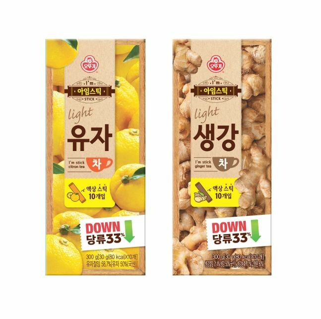 ㈜오뚜기(대표이사 이강훈)는 당류 함량을 33% 낮춘 ‘아임스틱 유자차’와 ‘아임스틱 생강차’를 스틱형으로 출시했다고 밝혔다.