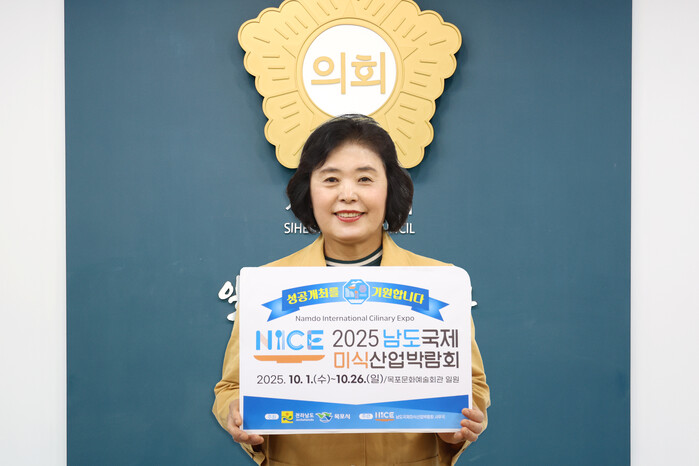 시흥시의회 오인열 의장이 ‘2025 남도국제미식산업박람회’의 성공적 개최를 기원하며 22일 ‘릴레이 응원 챌린지’에 동참했다.