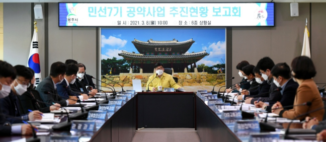 신 시장은 “공약사항은 시민과의 약속인 만큼 시정에서 최우선으로 추진돼야 할 사항”이라며 “시민의 복지향상과 발전을 위해 공약사업이 차질 없이 추진될 수 있도록 최선을 다해 줄 것”을 당부했다.