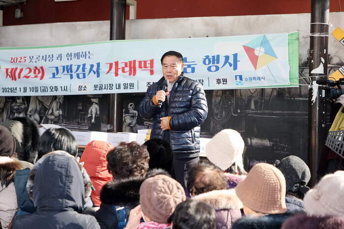 수원특례시의회(의장 이재식)가 10일(금) 수원 못골종합시장 및 야외무대에서 열린 2025 가래떡 나눔 행사에 참석했다.