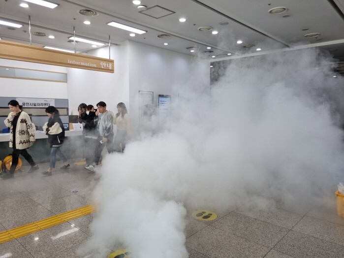 용인특례시(시장 이상일)는 24일 시청사가 속해 있는 처인구 삼가동 문화복지행정타운에 화재가 발생했을 경우 공직자와 시민들이 안전하게 대피할 수 있도록 소방 훈련을 했다고 25일 밝혔다.