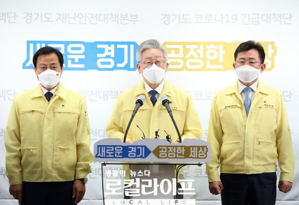 이재명 경기도지사와 장현국 경기도의회 의장, 박근철 경기도의회 더불어민주당 대표의원은 9일, 경기도청에서 긴급 합동 기자회견을 열고 이런 내용을 담은 ‘추석경기 살리기 한정판 지역화폐(소비지원금)’ 지급 계획을 발표했다.