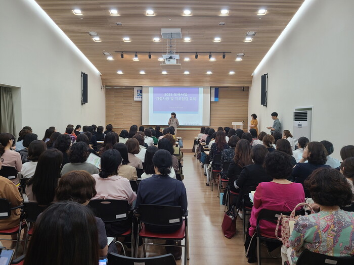 사진/수원시가 ‘2023년 보육사업안내(지침) 보육교직원 교육’을 열고 있다.(사진제공=수원시)