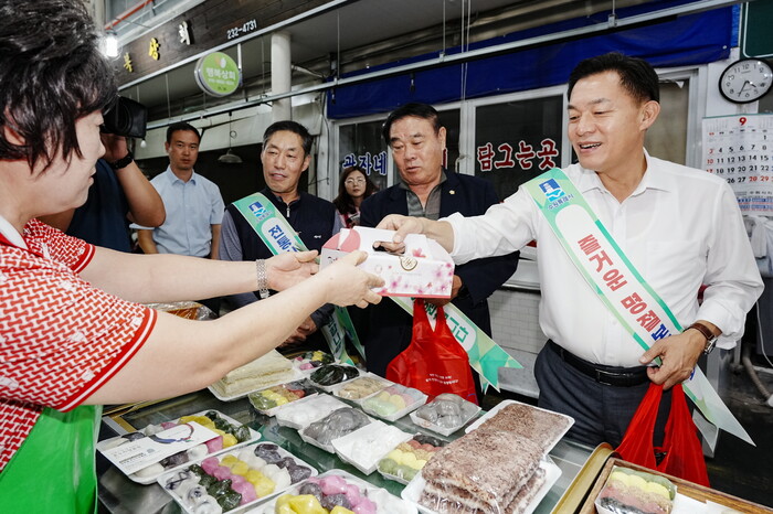 이재준 수원특례시장과 이재식 수원특례시의회 부의장은 권선종합시장에서 고기류, 과일(사과, 포도 등 제철 과일), 쌀, 떡, 전 등 명절 음식을 온누리 상품권으로 구매하고, 상인들을 격려했다.