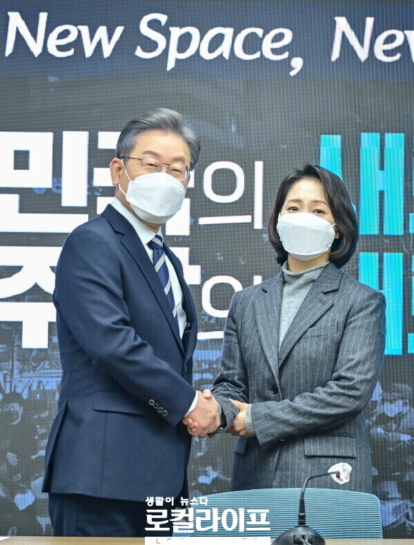 | ▲ 이재명 민주당 대선 후보가 조동연 공동선대위원장을 둘러싼 사생활 논란에 대해 안타까운 마음을 전하며, 모든 책임은 자신이 지겠다는 입장을 밝혔다. 자료사진. 사진은 지난 11월 30일 영입 발표 당시 이재명 후보(왼쪽)와 조동연 공동선대위원장(오른쪽)이 인사를 나누는 모습. (사진제공=더불어민주당) |