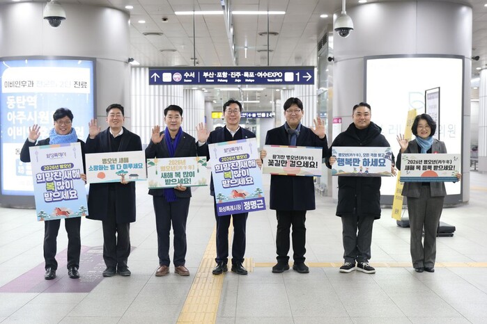 [화성=로컬라이프] 송준형 기자 = 정명근 화성특례시장은 2026 병오년을 맞아 동탄지역 시.도의원님들과 동탄역에서 시민 여러분께 새해 인사를 드리며 하루를 시작했다.