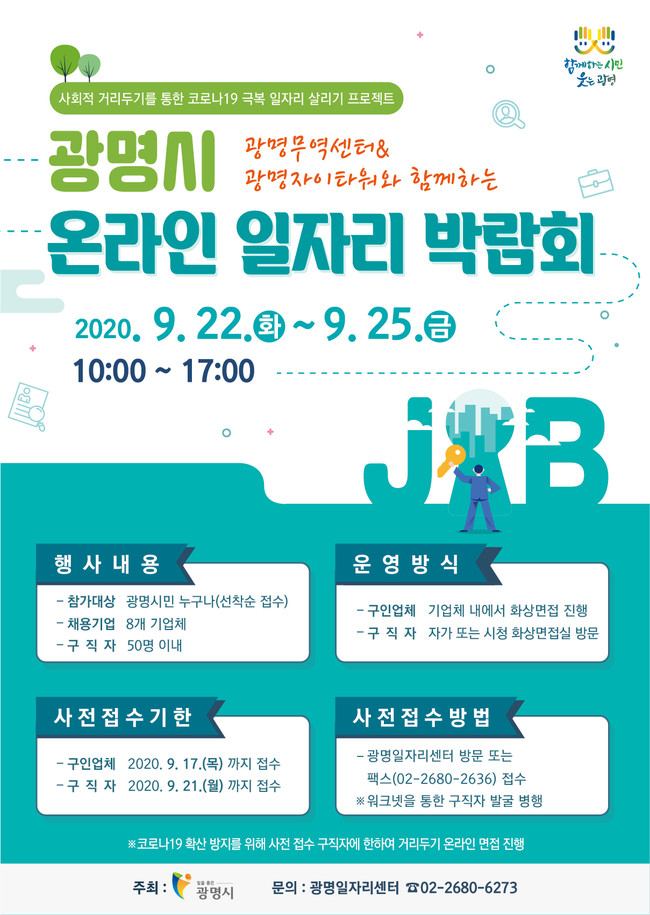 시는 22일부터 25일까지 4일간 ‘광명무역센터&광명자이타워와 함께하는 온라인 일자리박람회’를 개최한다.
