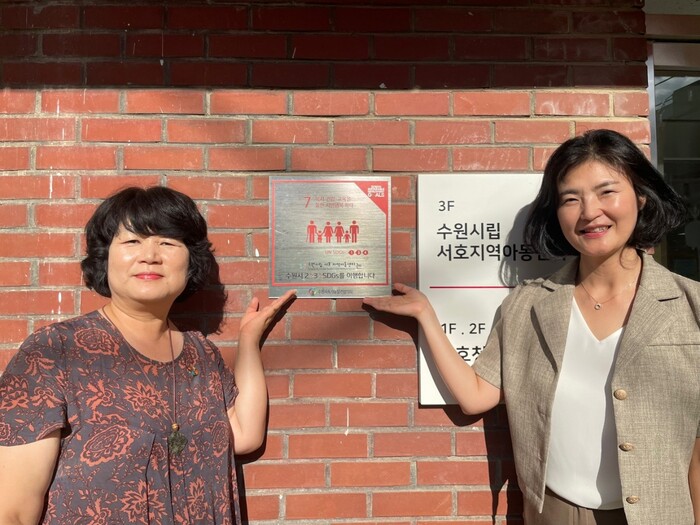 ‘지속가능발전목표(SDGs) 현판 프로젝트’는 수원시 2030지속가능발전목표를 알리고, 기업이나 단체가 SDGs 목표 달성을 위해 노력하고 있다는 사실을 시각적으로 홍보하는 실천 사업이다. 수원시립서호지역아동센터는 ‘복지·건강·교육을 통한 시민행복 확대’에 이바지한 공적을 인정받아 현판식을 추진하게 됐다.