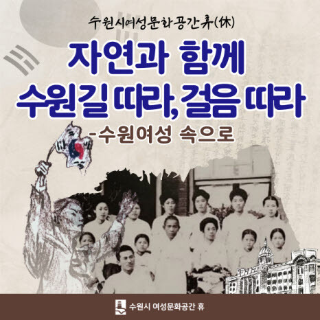 수원시(시장 이재준)와 수원시여성문화공간 휴(休)는 수원의 역사 속 여성 인물들의 생가터와 독립운동 유적지를 거닐며 수원 여성들의 삶을 찾아보는 탐방 프로그램 ‘자연과 함께 수원길 따라, 걸음따라- 수원 여성 속으로’를 마련했다.