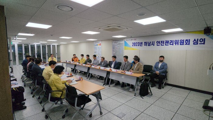 이날 시청 본관 통합방위지원본부에서 개최한 안전관리위원회는 이현재 하남시장을 비롯한 배석환 하남경찰서장, 이제철 하남소방서장 등 유관 기관장 7명 외 안전관리자문단으로 전기, 건축 분야 전문가 2명이 한자리에 모여 인파사고 예방대책 등 안전관리계획 전반에 대해 논의했다.