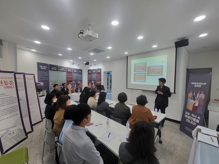 수원시가 20일 시민 문화공간 기억공간 ‘잇-다’에서 전시 연계프로그램 ‘학예사가 들려주는 그녀들의 못다 한 이야기’ 첫 번째 강의를 열었다. 이동근 수원박물관 학예연구사가 수원시 명예의 전당에 헌액된 여성 3인, 김향화·이선경·안점순의 삶을 소개했다.