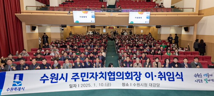 수원시는 10일 시청 대강당에서 ‘수원시 주민자치협의회 협의회장 이·취임식’을 개최했다. 수원시 주민자치협의회는 지난해 12월 12일 정기 회의를 열고, 신임 협의회장으로 진성원 영통3동 주민자치회장을 선출한 바 있다.