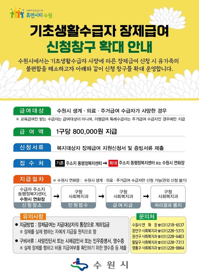 사진/기초생활수급자 장제급여 신청창구 확대 안내<수원시청 제공>