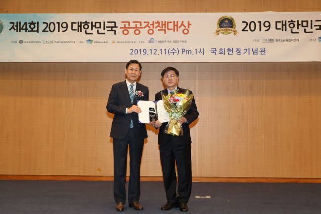 ‘대한민국 공공정책대상’은 한 해 동안 입법, 행정, 지방자치, 교육, 지역발전 등 각 분야별로 정책 발굴과 발전에 기여한 업적이 큰 인물에게 수여하는 상으로 한국공공정책학회가 주최하고 한국공공기관연구원 등이 공동 주관했다.