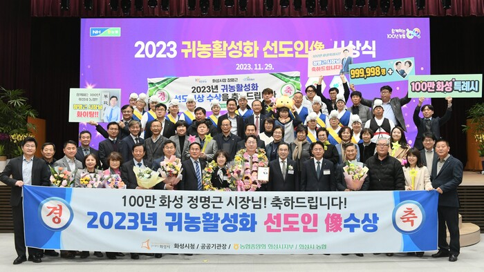 정명근 화성시장이 29일 농협중앙회 중앙본부에서 2023년 ‘귀농활성화 선도인상’을 수상했다.