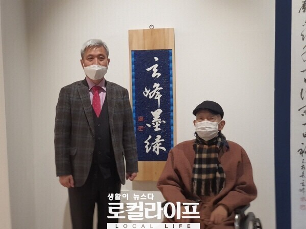 | ▲ 곽상욱 오산시상은 서예가 조상기 씨의 별세 소식에 “오산의 추사”라고 고인을 회고하며, 애도의 뜻을 표했다. 사진은 곽상욱 오산시장(왼쪽)과 서예가 조상기 씨. (사진출처=곽상욱 페이스북) |