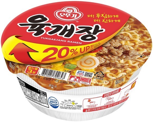오뚜기 관계자는 "양을 20% 늘려 ‘육개장 컵’을 리뉴얼 출시했다”며 “더 진하고 더 푸짐한 육개장의 맛을 즐길 수 있을 것”이라고 말했다.