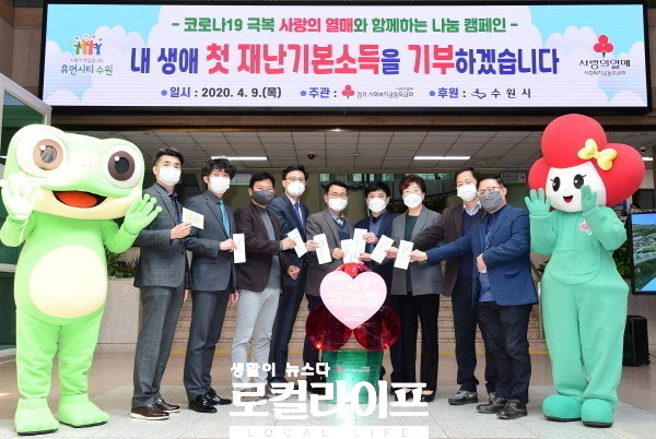 이에 맞춰 수원시는 경기사회복지공동모금회와 공동으로 시민들로부터 ‘재난기본소득’을 기부받아 당장의 위기에 처한 소상공인, 청년 실직자, 저소득층·사각지대 시민 등에게 지원하는 ‘사랑의 열매와 함께 극복 수원’ 나눔 캠페인을 전개한다. 앞서 염태영 수원시장은 지난 4월 2일 ‘수원시 재난기본소득’ 지원을 발표하는 브리핑에서 생계가 어렵지 않은 가정에서 재난기본소득지원금을 코로나19로 어려움을 겪는 이들에게 기부하는 ‘착한 기부 운동’을 제안한 바 있다.