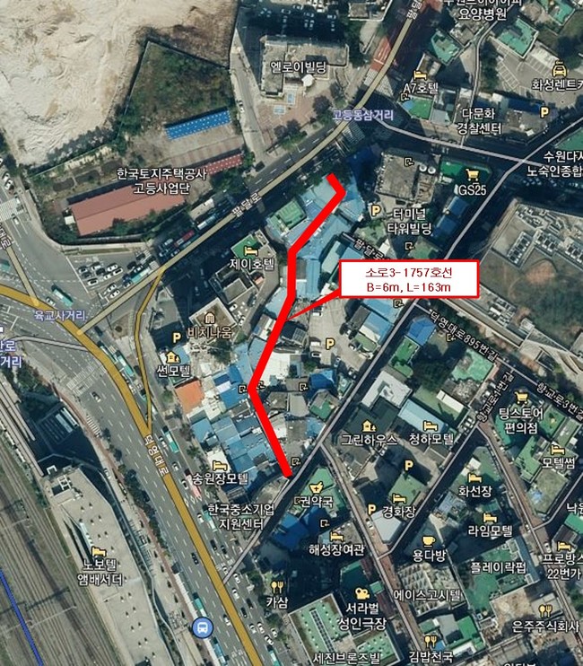 사진/수원역 주변 성매매 집결지 안에 개설할 소방도로 위치<수원시청 제공>