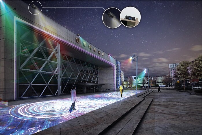 시는 주변과 어우러지는 문화예술거리 조성을 위해 안양아트센터 옥탑부에 조명기구를 설치해 미디어아트를 연출한다. 특히 올해는 시 승격 50주년을 맞아 안양의 역사, 명학의 유래 등 다양한 스토리를 영상에 담을 예정이다.