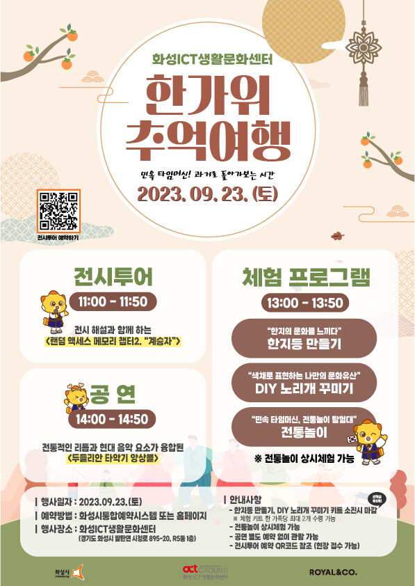 자세한 사항은 화성ICT생활문화센터 홈페이지에서 확인할 수 있으며, 전시투어는 화성시통합예약시스템에서 사전예약이 필요하다. 일부 체험프로그램은 키트 소진시 마감될 수 있다.