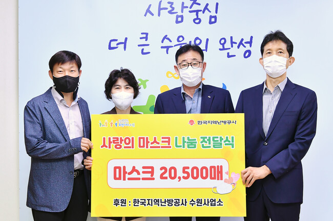 한국지역난방공사 수원사업소는 수원시 소재 장애인직업재활시설에서 생산한 마스크를 구매해 수원시에 기부했다.