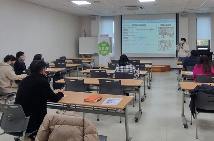 이번 평가회는 학교 치유텃밭 조성 및 운영사업 6개교와 특수학급 연계 치유농업 프로그램 교육 11개교 사업 담당 교사들이 참여하여, 2022년도 사업 추진 결과에 대해 보고하고 평가했으며, 이를 토대로 2023년도 사업계획을 수립하는 시간이 되었다.